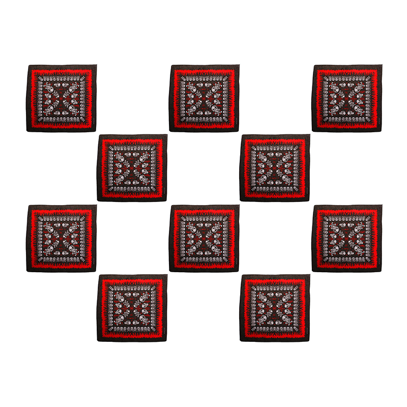 Бандана пиратская, байкера,рокера "Пиратские Черепа" красно черная 55 х 55 см (Набор 10 шт.)