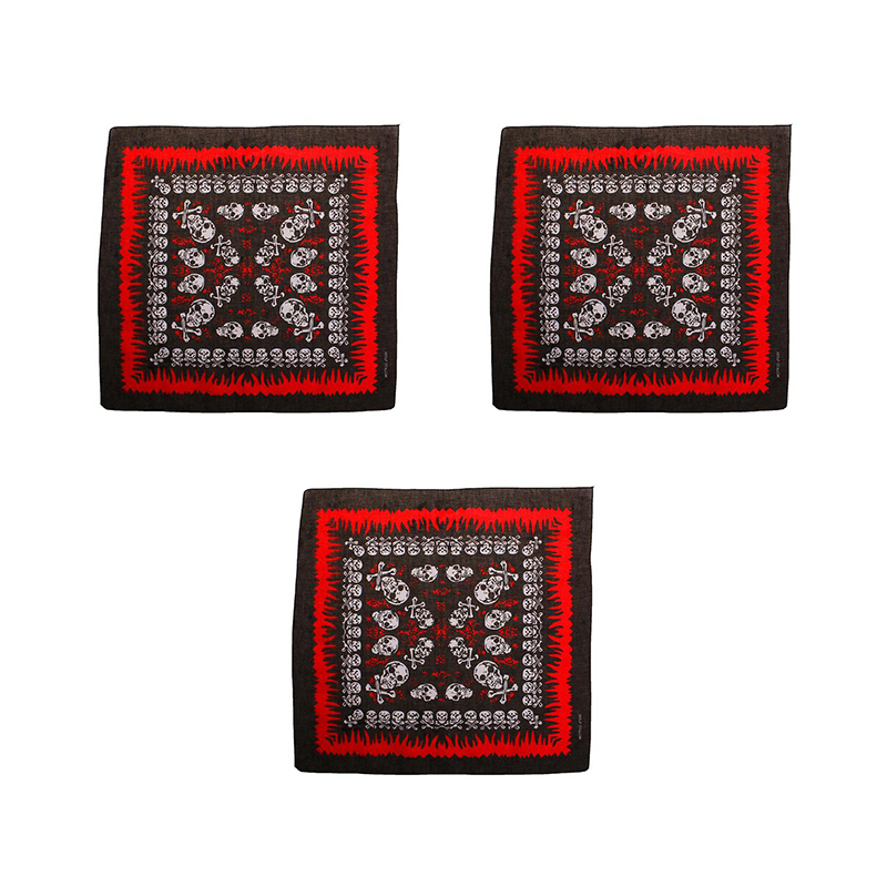 Бандана пиратская, байкера,рокера "Пиратские Черепа" красно черная 55 х 55 см (Набор 3 шт.)
