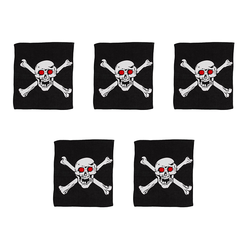 Бандана байкера "Пиратский Череп Веселый Роджер" черно бело красная байкерская 55 х 55 см (Набор 5 шт.)