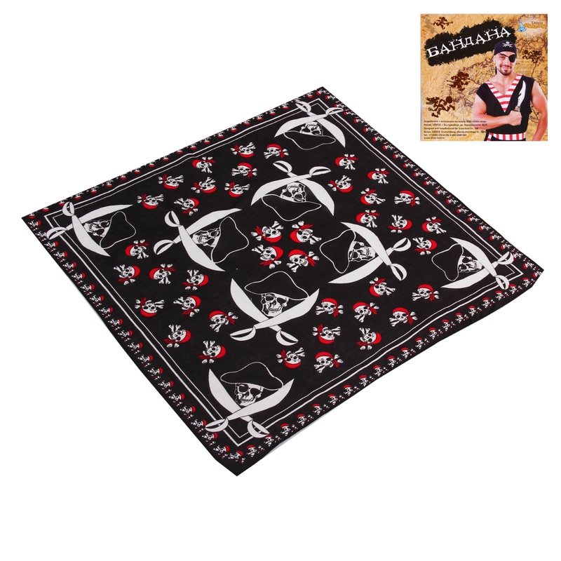 Бандана пиратская,байкера, рокера "Череп пирата в красной бандане" 55 х 55 см (Набор 10 шт.)