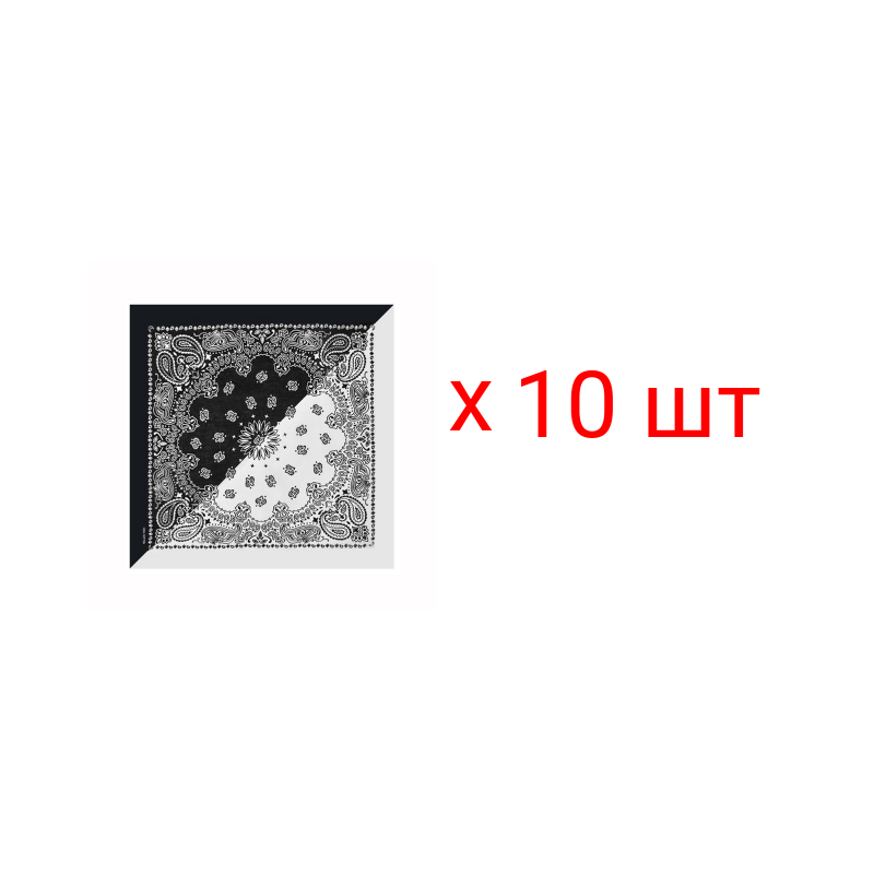 Бандана, повязка на голову, хлопковая с узорами два цвета черный, белый, 55 х 55 см (Набор 10 шт.)