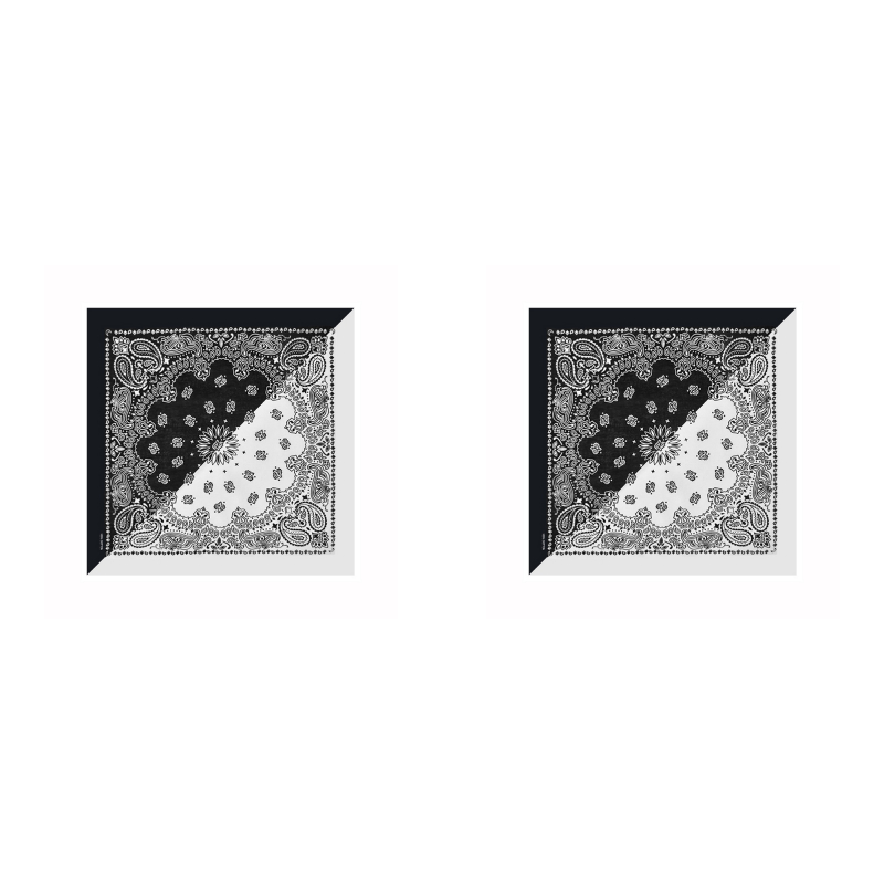 Бандана,повязка на голову, хлопковая с узорами два цвета черный, белый, 55 х 55 см (Набор 2 шт.)