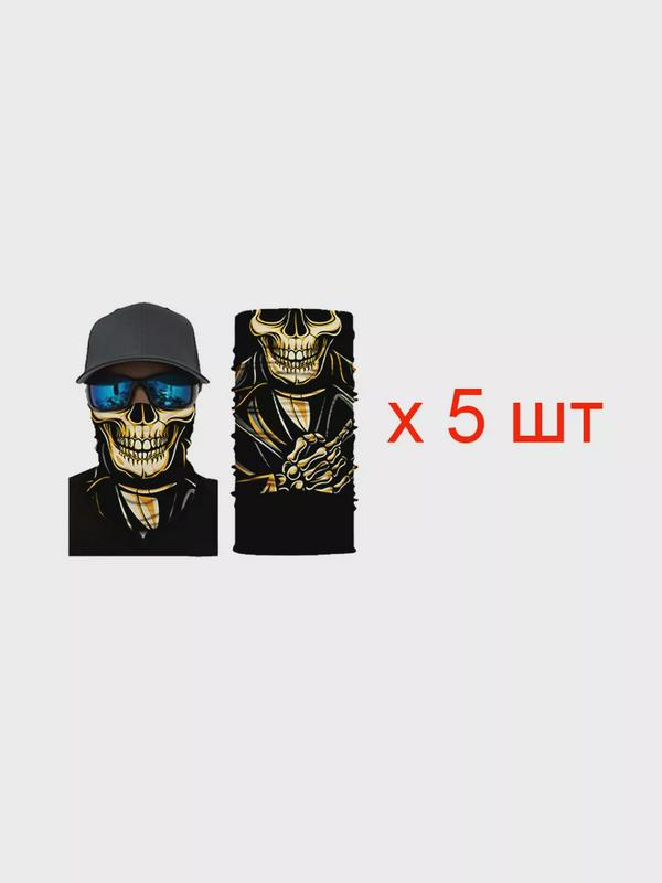 Бандана труба (бафф) "Череп-рокер" (Набор 5 шт.)