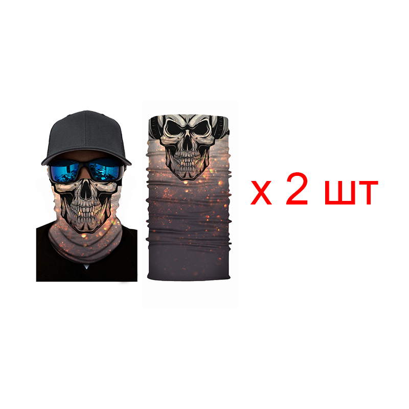 Бандана труба (бафф) "Череп в наушниках" (Набор 2 шт.)