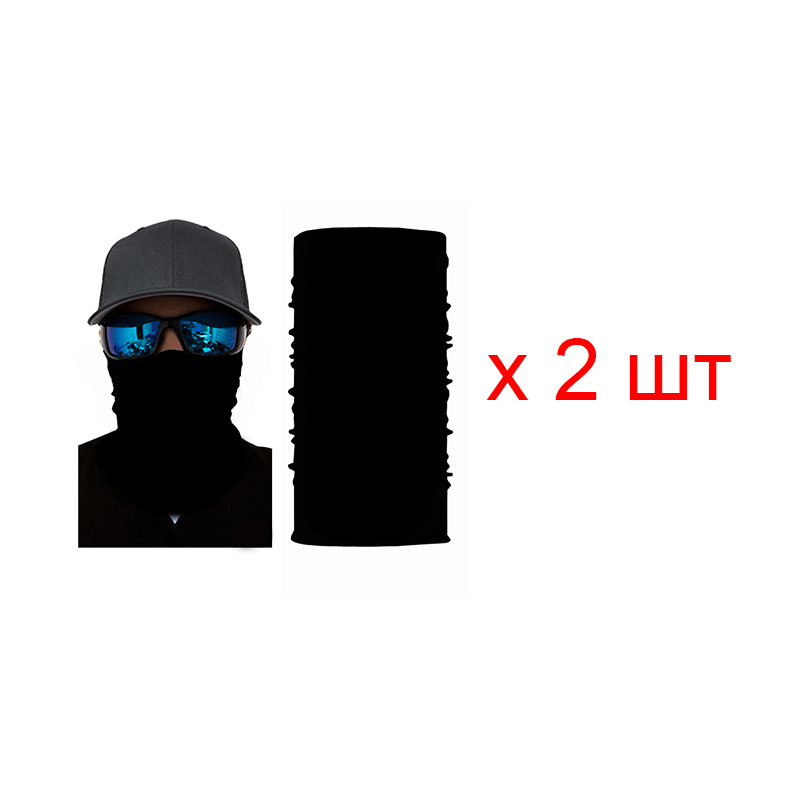 Бандана труба (бафф), цвет черный (Набор 2 шт.)