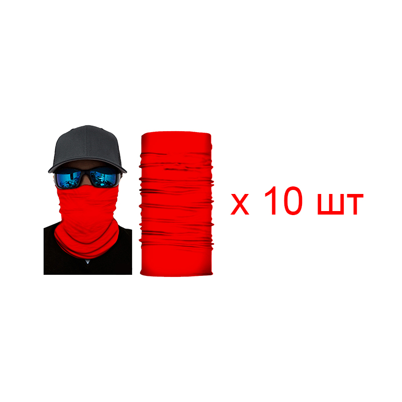 Бандана труба (бафф), цвет красный (Набор 10 шт.)