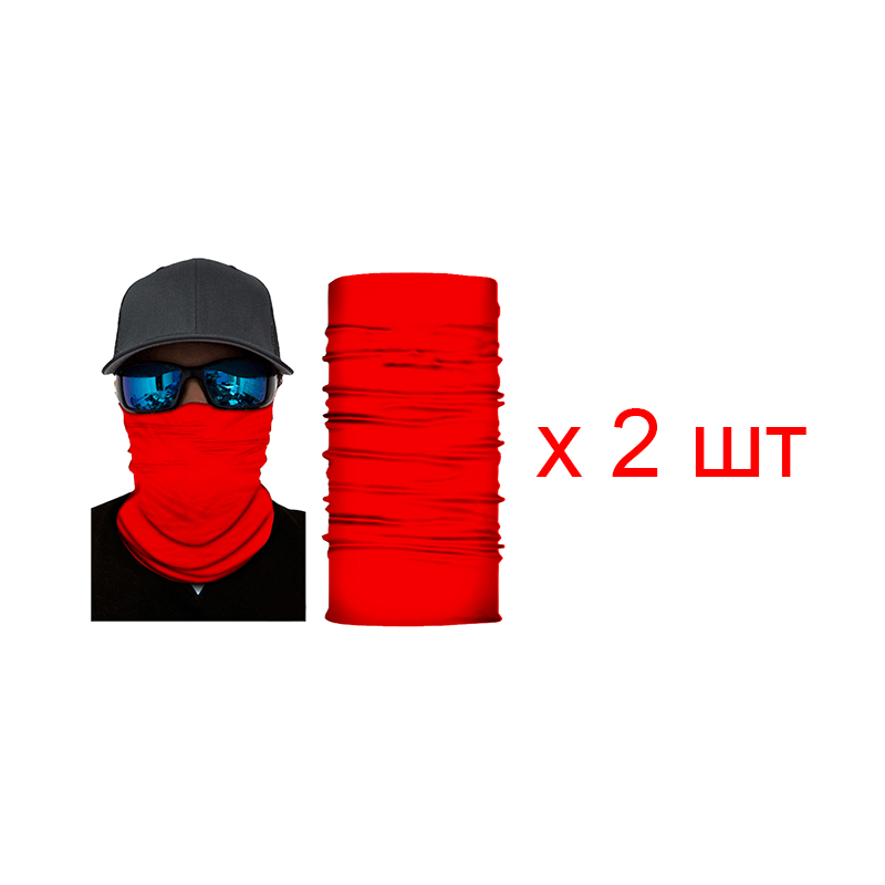 Бандана труба (бафф), цвет красный (Набор 2 шт.)