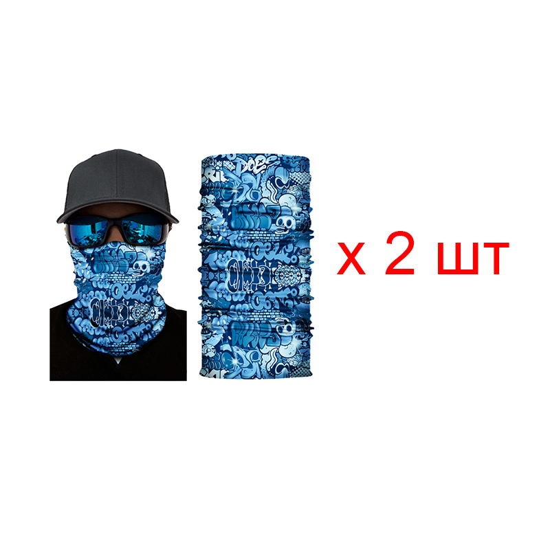 Бандана труба (бафф) "Граффити", цвет синий (Набор 2 шт.)