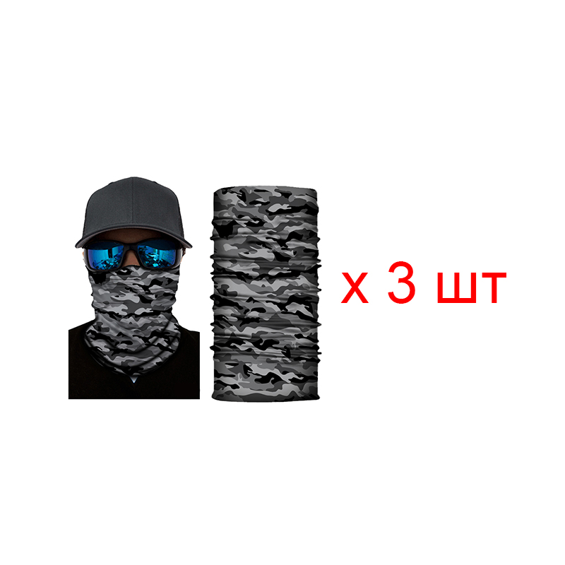 Бандана труба (бафф) "Камуфляж", цвет серый (Набор 3 шт.)