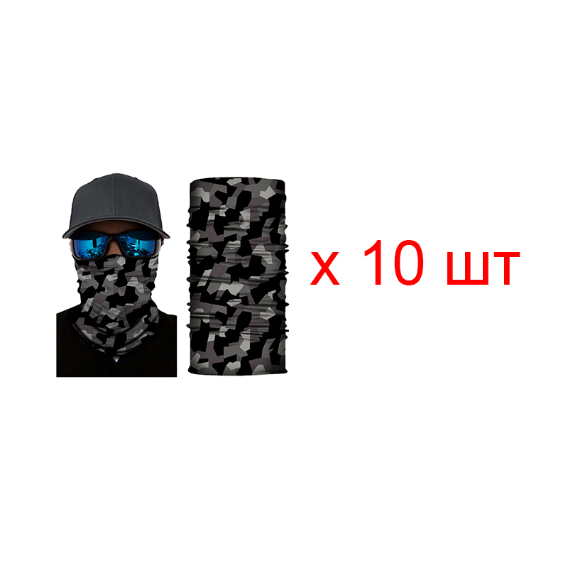 Бандана труба (бафф) "Камуфляж", цвет темно-серый (Набор 10 шт.)
