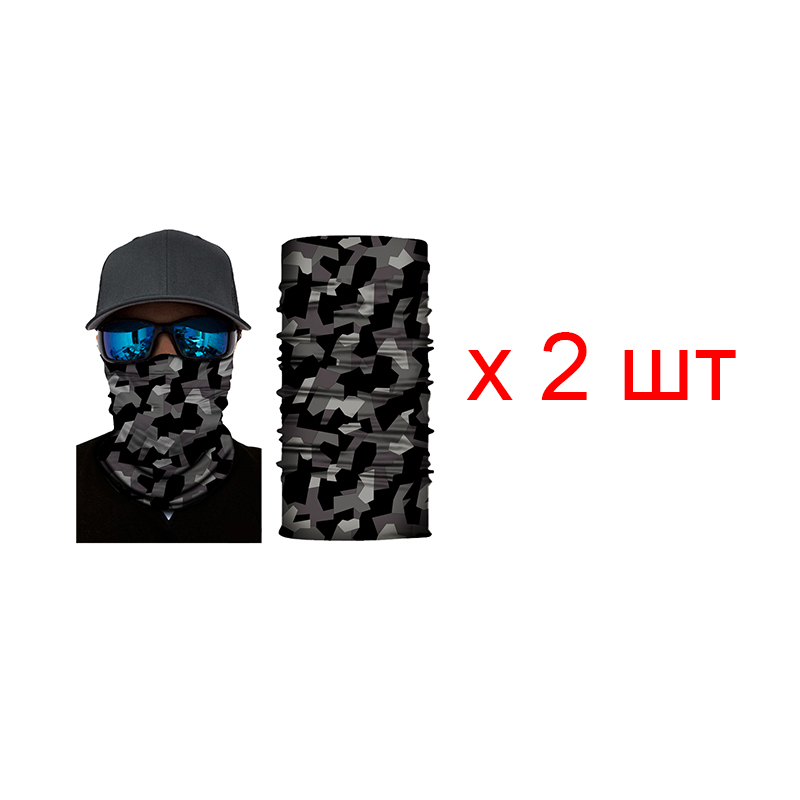 Бандана труба (бафф) "Камуфляж", цвет темно-серый (Набор 2 шт.)