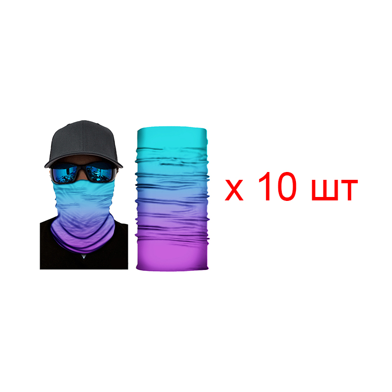 Бандана труба (бафф) омбре из голубого в фиолетовый (Набор 10 шт.)