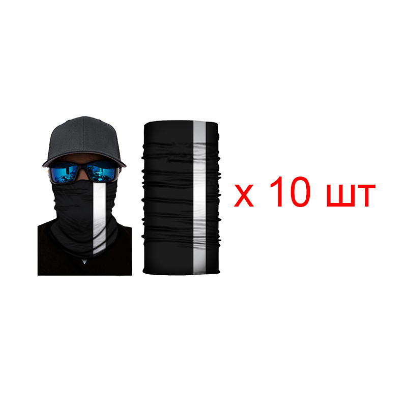 Бандана труба (бафф) со светоотражающей полосой, цвет черный (Набор 10 шт.)