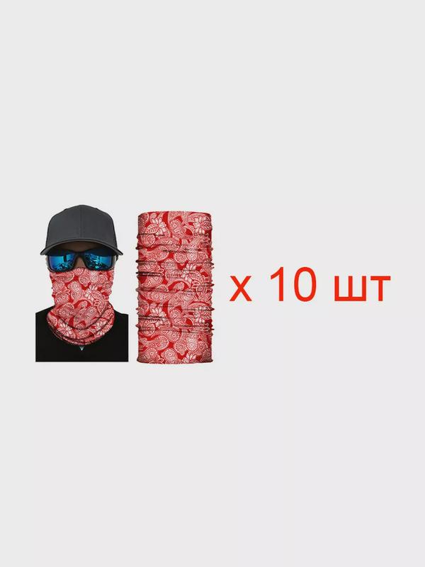 Бандана труба (бафф) "Узоры красные" (Набор 10 шт.)