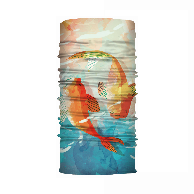 Бандана труба (бафф) голубой оранжевый "Золотые рыбки"
