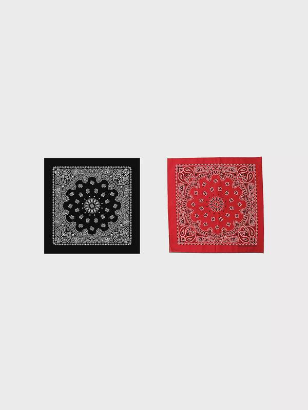 Бандана, повязка на голову, хлопковая "Узор" 55 х 55 см, цвет черный, красный (Набор 2 шт.)