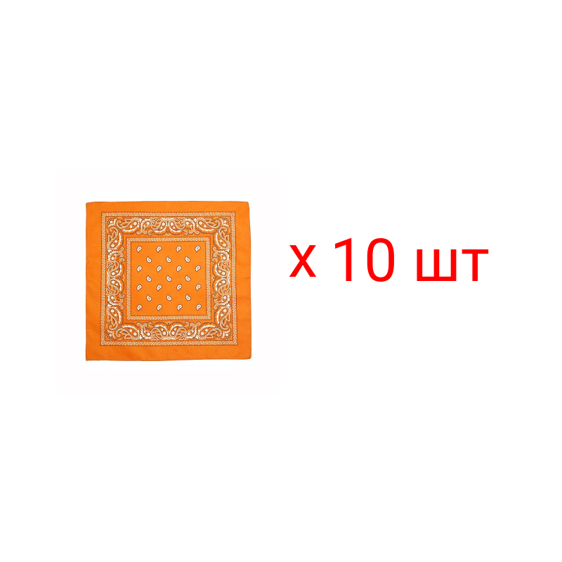 Бандана, повязка на голову, хлопковая "Узор квадратный" 55 х 55 см, цвет оранжевый (Набор 10 шт.)