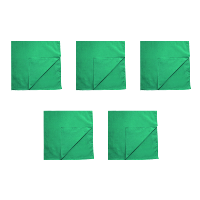 Банданы, повязки на голову, хлопковые однотонные, цвет зеленый, (Набор 5 шт.)