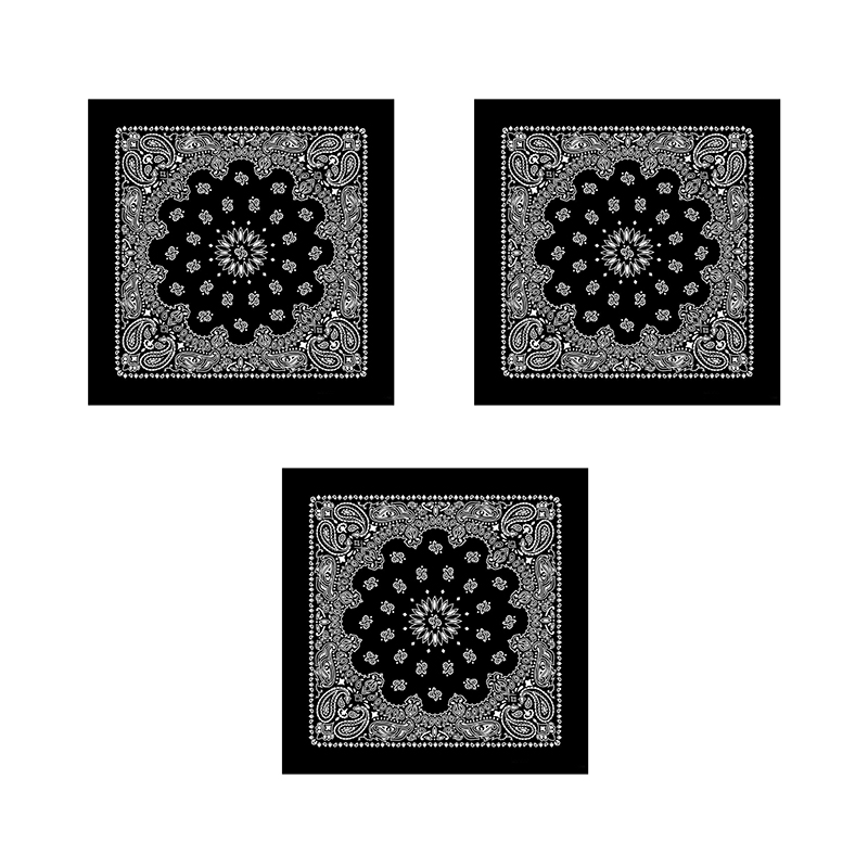 Банданы,повязки на голову, хлопковые "Узор" 55 х 55 см, цвет черный (Набор 3 шт)