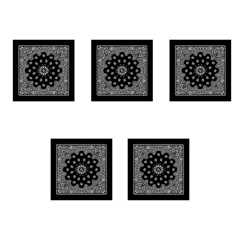 Банданы,повязки на голову, хлопковые "Узор" 55 х 55 см, цвет черный (Набор 5 шт)