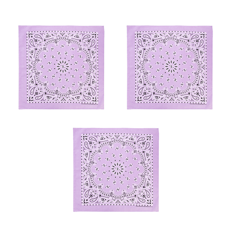 Банданы,повязки на голову, хлопковые "Узор" 55 х 55 см, цвет фиолетовый сиреневый (Набор 3 шт.)