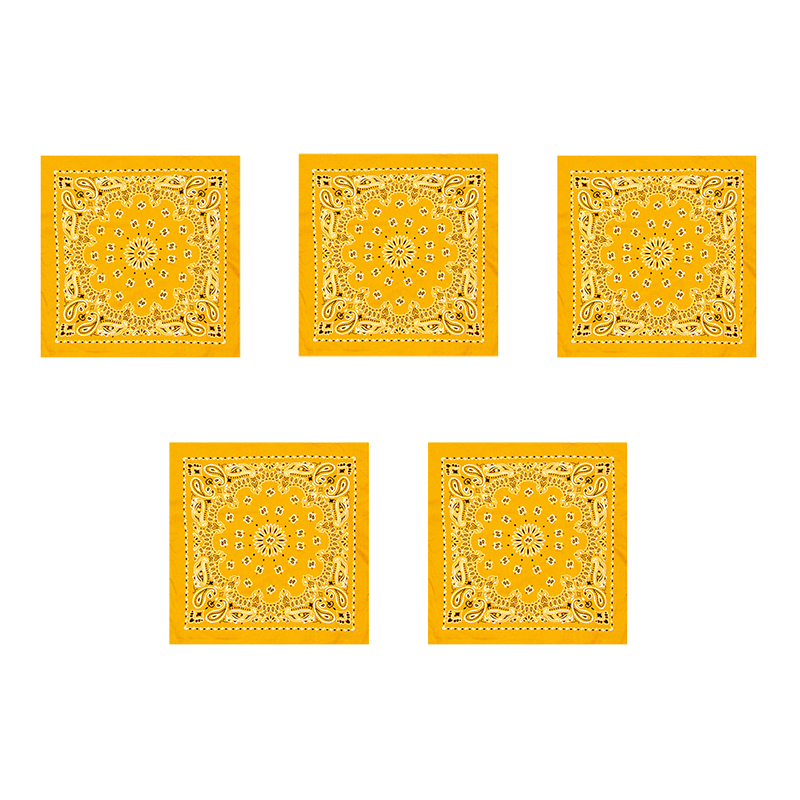 Банданы,повязки на голову, хлопковые "Узор" 55 х 55 см, цвет желтый (Набор 5 шт.)