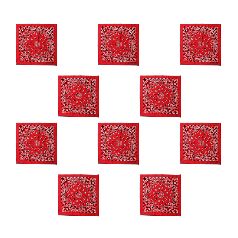 Банданы,повязки на голову, хлопковые "Узор" 55 х 55 см, цвет красный (Набор 10 шт)