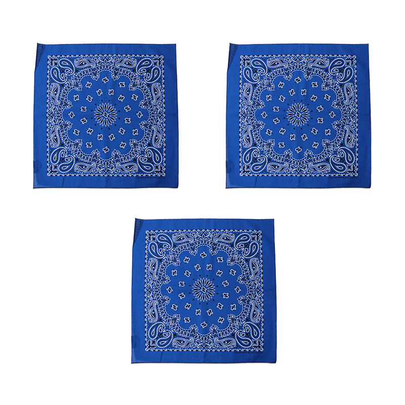 Банданы,повязки на голову, хлопковые "Узор" 55 х 55 см, цвет синий (Набор 3 шт)