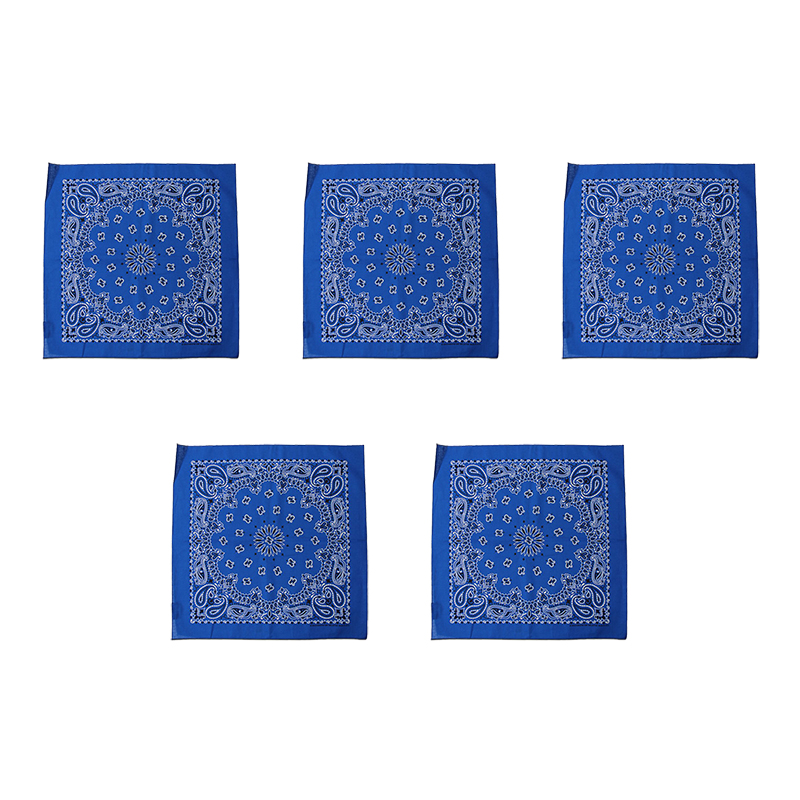 Банданы,повязки на голову, хлопковые "Узор" 55 х 55 см, цвет синий. (Набор 5 шт)