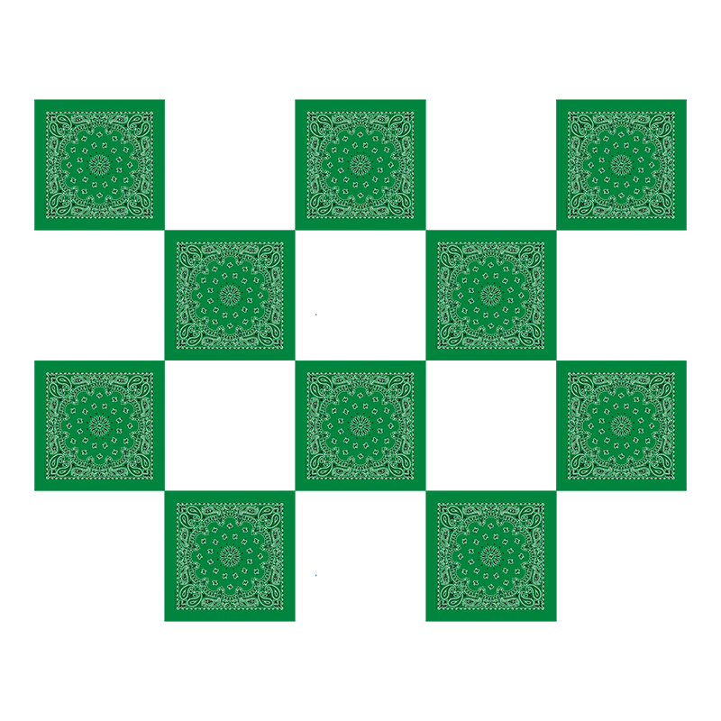 Банданы,повязки на голову,хлопковые "Узор" 55 х 55 см,цвет зеленый (Набор 10 шт)
