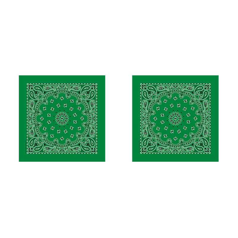Банданы,повязки на голову, хлопковые "Узор" 55 х 55 см, цвет зеленый (Набор 2 шт)