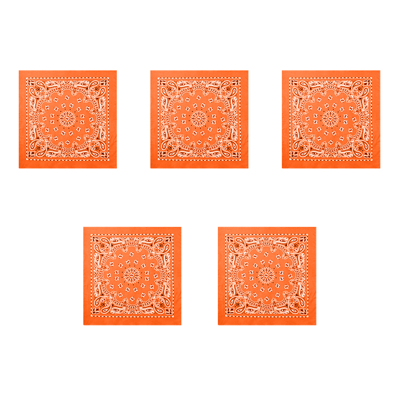 Банданы хлопковые "Узор Пейсли" 55 х 55 см, цвет оранжевый (Набор 5 шт.)