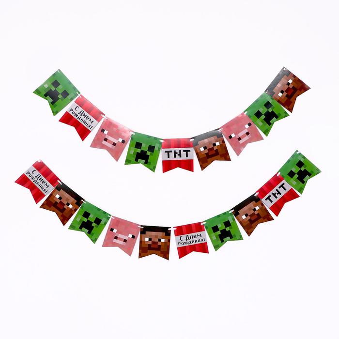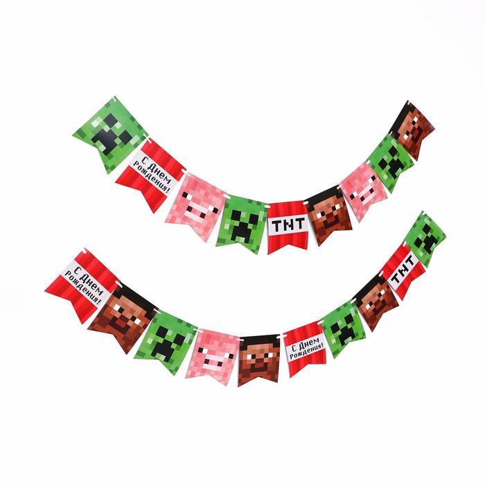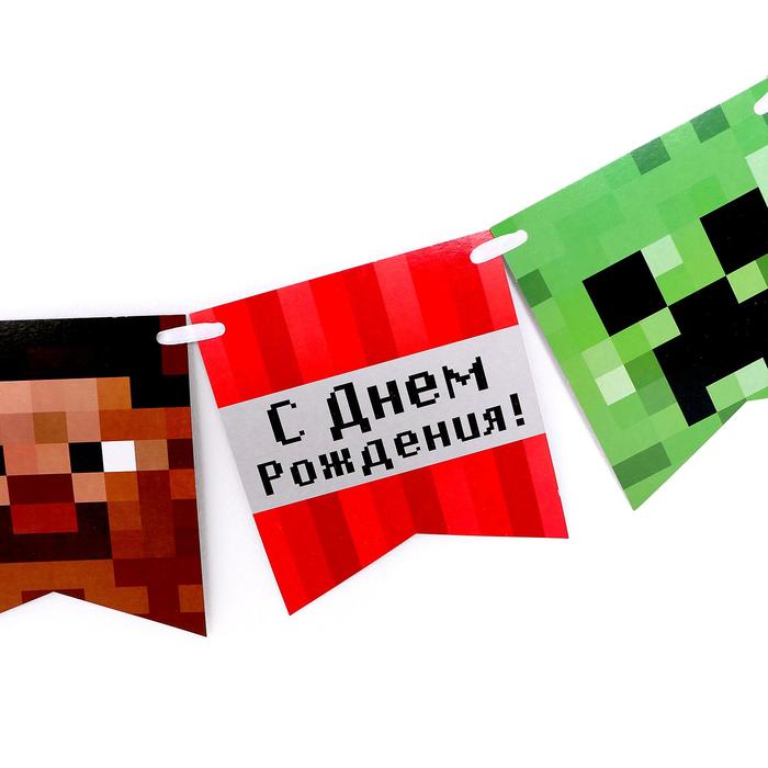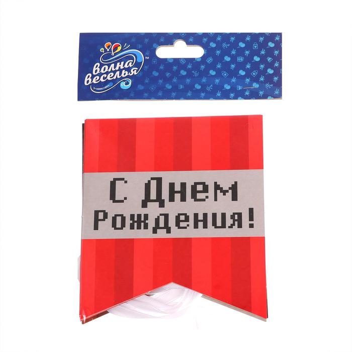 Гирлянда бумажная "С днем рождения", пиксели, 300 см