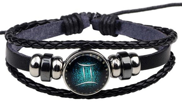 Браслет гороскоп плетенный кожаный женский, мужской зодиак "Бирюзовые Близнецы"