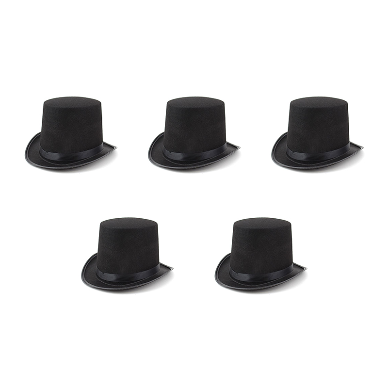 Цилиндр черный фетровый, шляпа карнавальная размер 59-60 (Набор 5 шт.)