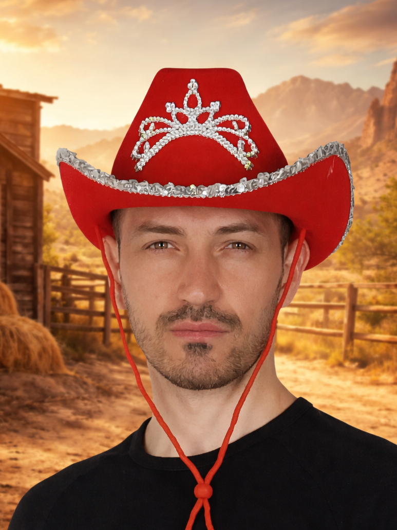 Шляпа ковбойская женская красная "Ковбой"