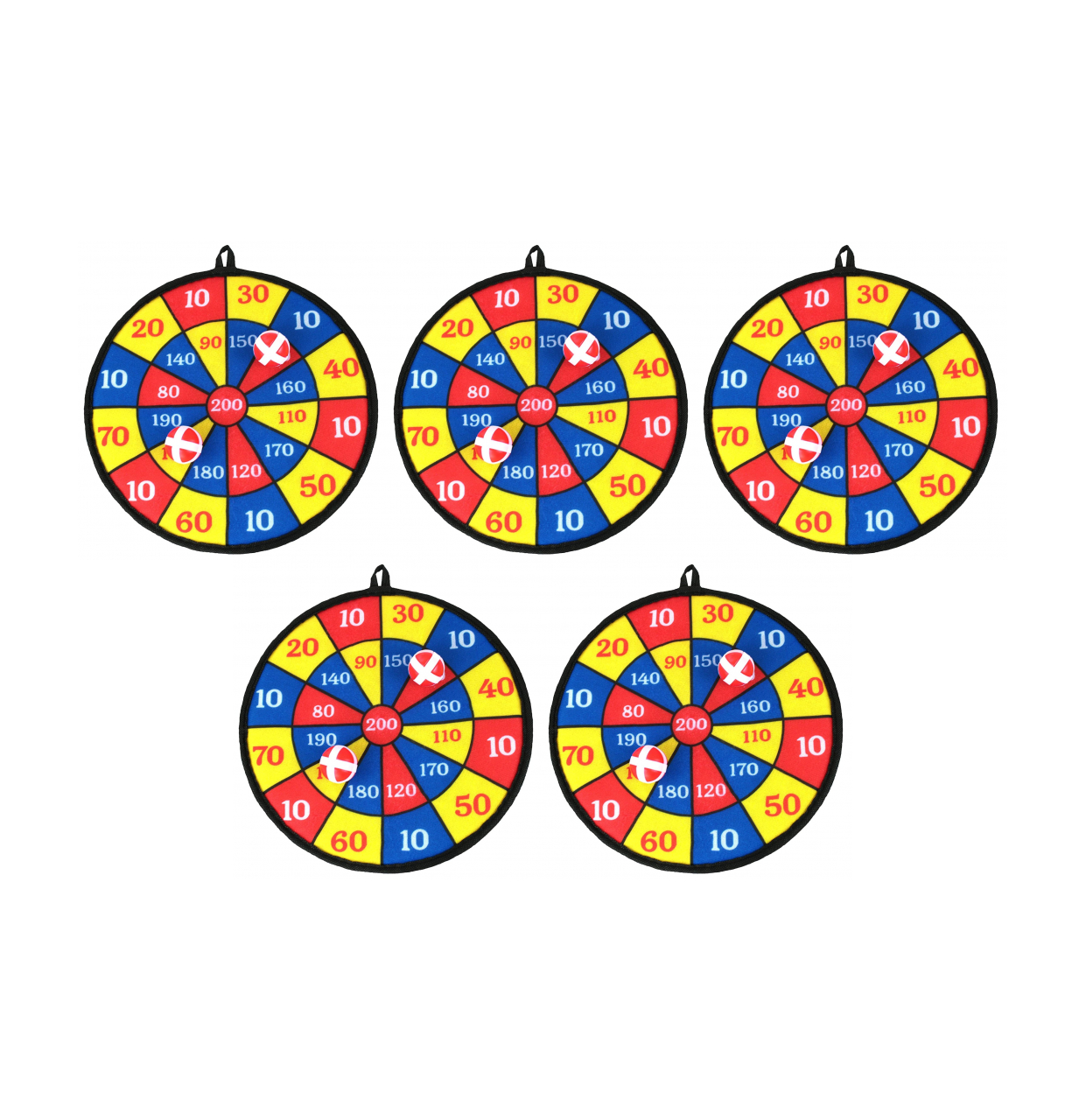 В комплекте 5 набора. Размер мишени 36 см. В одном наборе 4 липучих мячика.