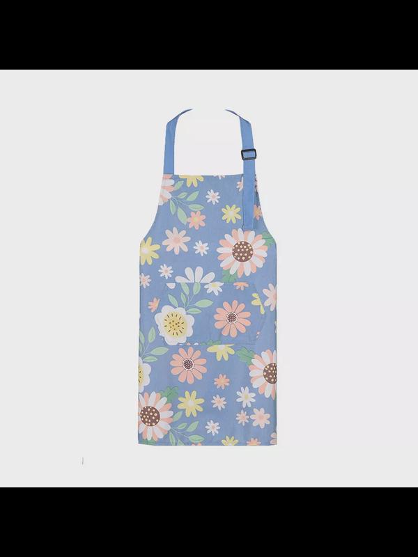 Фартук "Цветочный" дышащий, маслостойкий, регулируемый, цвет голубой (Набор 2 шт.)