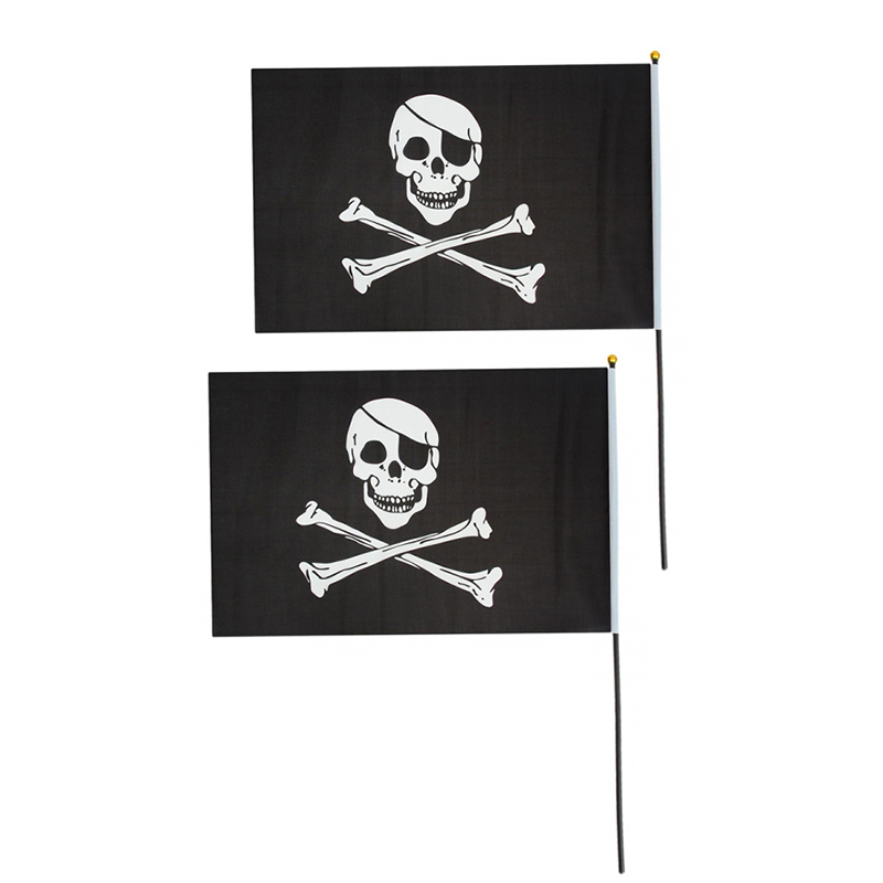 Флаг пиратский черный "Веселый Роджер" пират с повязкой, 14*21 см (Набор 2 шт.)