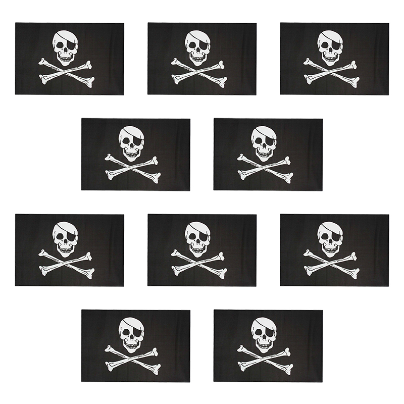 Флаг пиратский черный "Веселый Роджер" пират с повязкой, большой 60х90см (Набор 10 шт.)