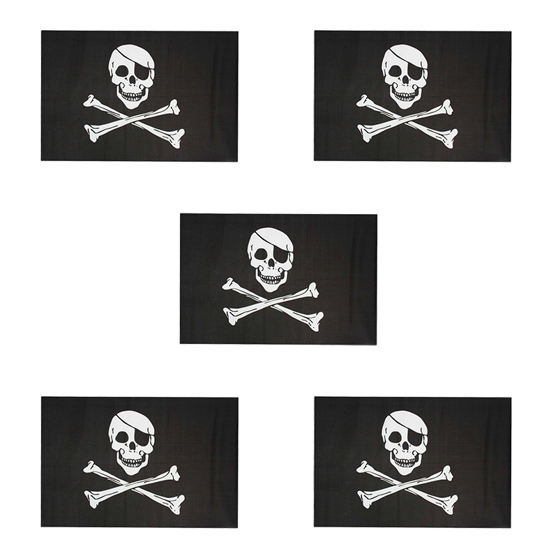 Флаг пиратский черный "Веселый Роджер" пират с повязкой, большой 60х90см (Набор 5 шт.)