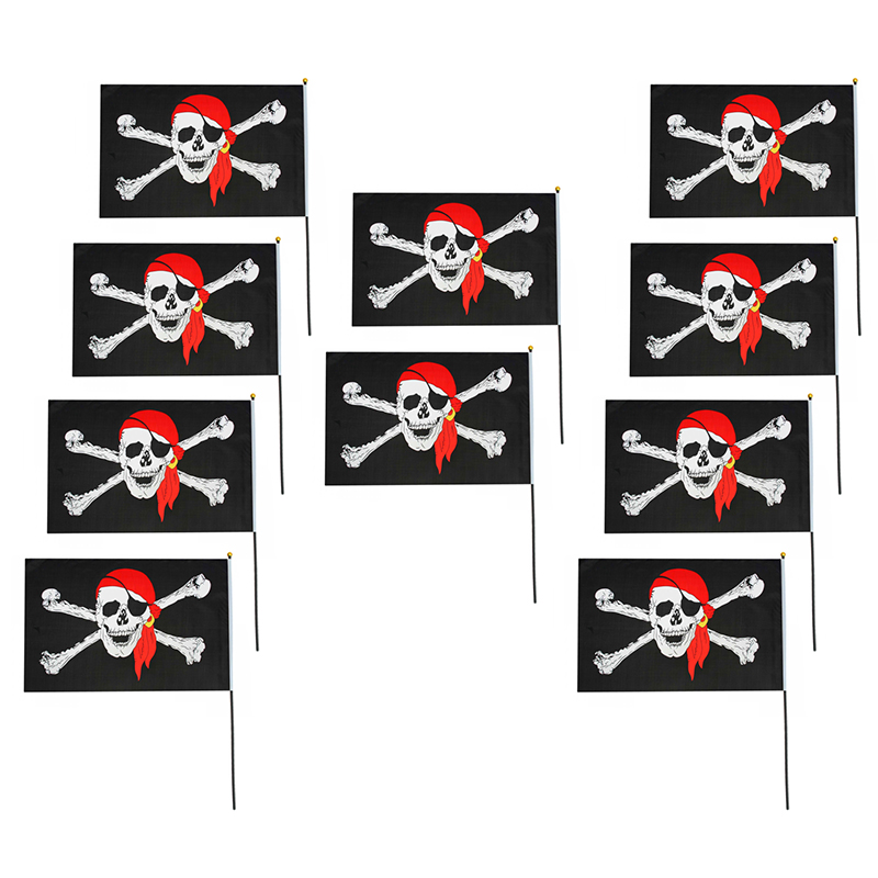Флаг пиратский черный "Веселый Роджер" пират в бандане с повязкой, 14*21 см (Набор 10 шт.)