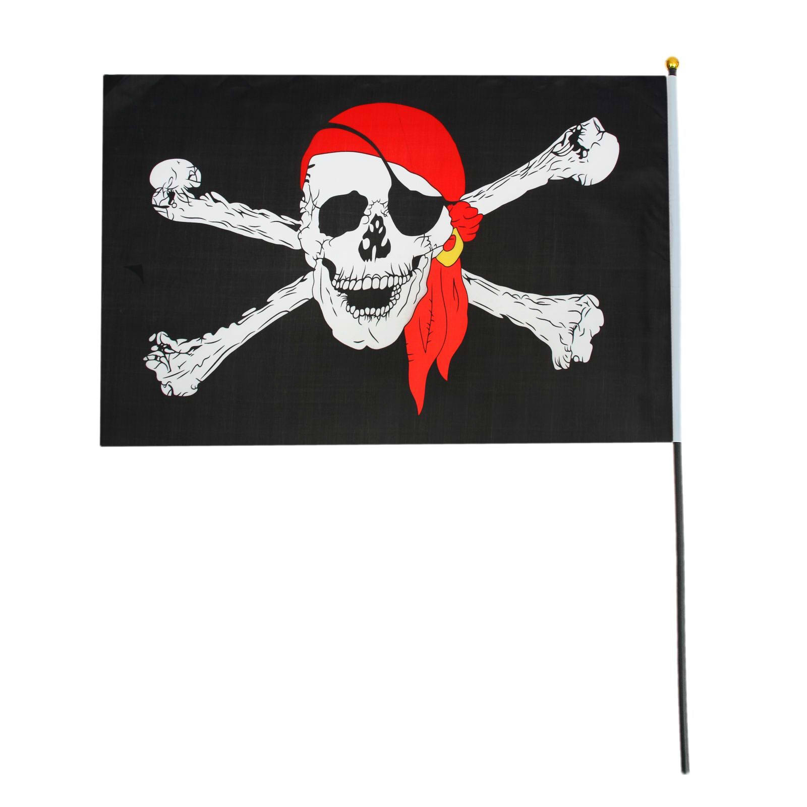 Флаг пиратский черный "Веселый Роджер" пират в бандане с повязкой, 14x21 см (Набор 30 шт.)