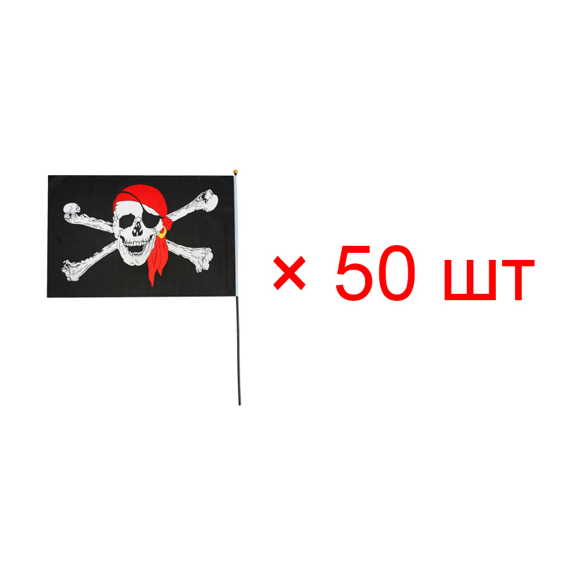 Флаг пиратский черный "Веселый Роджер" пират в бандане с повязкой, 14*21 см (Набор 50 шт.)