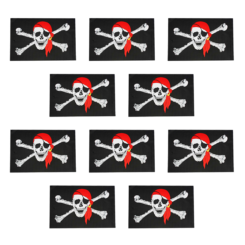 Флаг пиратский "Веселый Роджер" пират в бандане с повязкой, большой 60х90см (Набор 10 шт.)