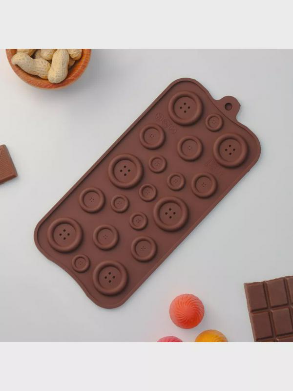 Форма силиконовая для льда и кондитерских украшений Доляна "Пуговки", 22x10,5 см, 19 ячеек, цвет шоколадный