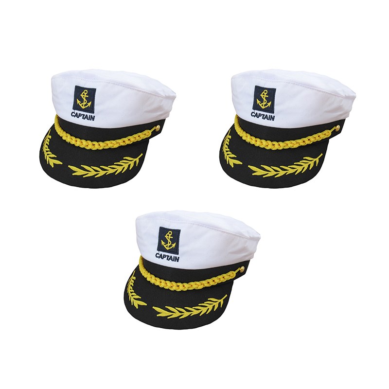 Фуражка морская взрослая капитанская "Captain", кепка капитана моряка с козырьком (Набор 3 шт.)