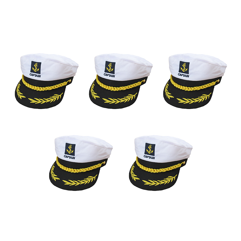 Фуражка морская взрослая капитанская "Captain", кепка капитана моряка с козырьком (Набор 5 шт.)