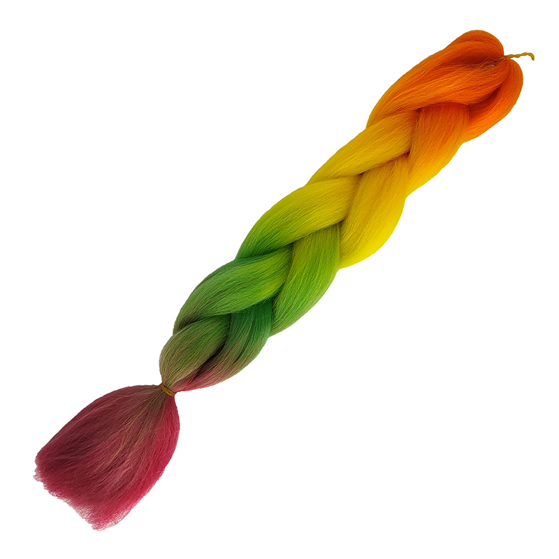 Канекалон коса 60 см, 4 цвета: оранжевый, желтый, зеленый, малиновый