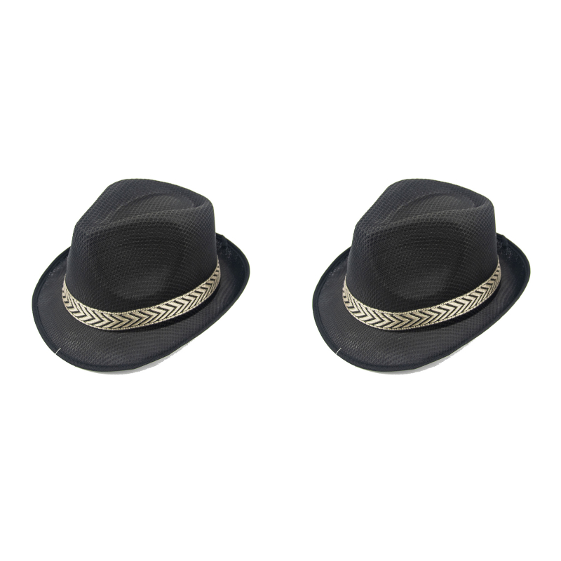 Гангстерская Шляпа черная федора "Гангстер мафиози" тканевая с золотистой лентой, размер 57-58 (Набор 2 шт.)